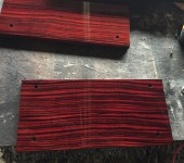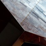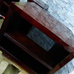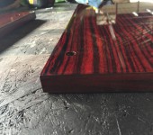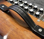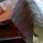 写真のサイドウッドはトップのクリアに経年によるクラック 草臥れなどがかなりありましたので、元のクリア塗装をすべて剥がした後に、木目を生かしたウレタン鏡面塗装を行いました。