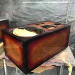これは元々、F-BASSというカナダの高級ベースメーカーが採用した塗装方法ですが、これをスピーカーエンクロージャーに採用してみました。