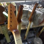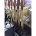 オリジナル塗料を研磨にて落とした後、補修を行い、サンバースト塗装、ウレタングロス鏡面仕上げを行ったNS1000Mです。今回ツキ板は張替えずに今回はオリジナルのツキ板を採用しています。塗装を剥いだ段階で導管内に塗料が残っているものをできるだけかき出し、漂白を行ってから塗装を行います。
