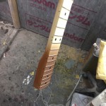 演奏時に手の触れるネック裏部分は薄目のシーラー仕上げとし、ヘッドとネックエンド部にのみに染料クリアをグラデーション塗装し、演奏性を高めています。あたかもバイオリンのような美しい外観のリプレイスメントネックです(*メイプル指板の指板面は現時点でシーラー未塗装となっています)