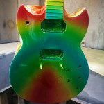 お客様からのご依頼により、1981年発売の高中正義のアルバム「虹伝説」その年の武道館公演で使用されたあの有名なレインボーカラーのSGのカラーリングを再現。